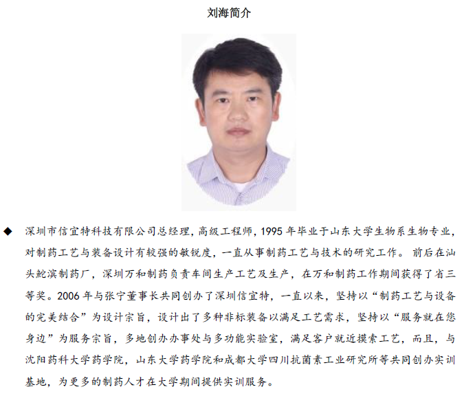 隨著2018年底的臨近,很多口服固體制劑一致性評價項目都到了重要節(jié)點,如何在最后的關(guān)鍵時刻讓項目有個完美的結(jié)局成為制藥同仁的共同心聲。為此,深圳信宜特與丹東百特聯(lián)合舉辦蘇州技術(shù)交流會,本次會議在北京會議的基礎(chǔ)上又?jǐn)U大了會議規(guī)模,延長了會議時間,更重要的是我們根據(jù)廣大客戶要求,增加了專家,擴展和豐富了會議內(nèi)容,本次專家有崔福德,謝沐風(fēng),陳洪,姜海濤,劉瑞明,劉怡,李雪冰,郭玉申和劉海等,他們或是粉體學(xué)和固體制劑工藝研究的實戰(zhàn)專家學(xué)者,或是溶出研究大咖,或者在放大實驗和BE實驗中積累了豐富經(jīng)驗,或者為逆向工程大咖和晶型專家等等,將會為大家?guī)砬八从械闹R盛宴。歡迎制藥同仁踴躍報名參會。