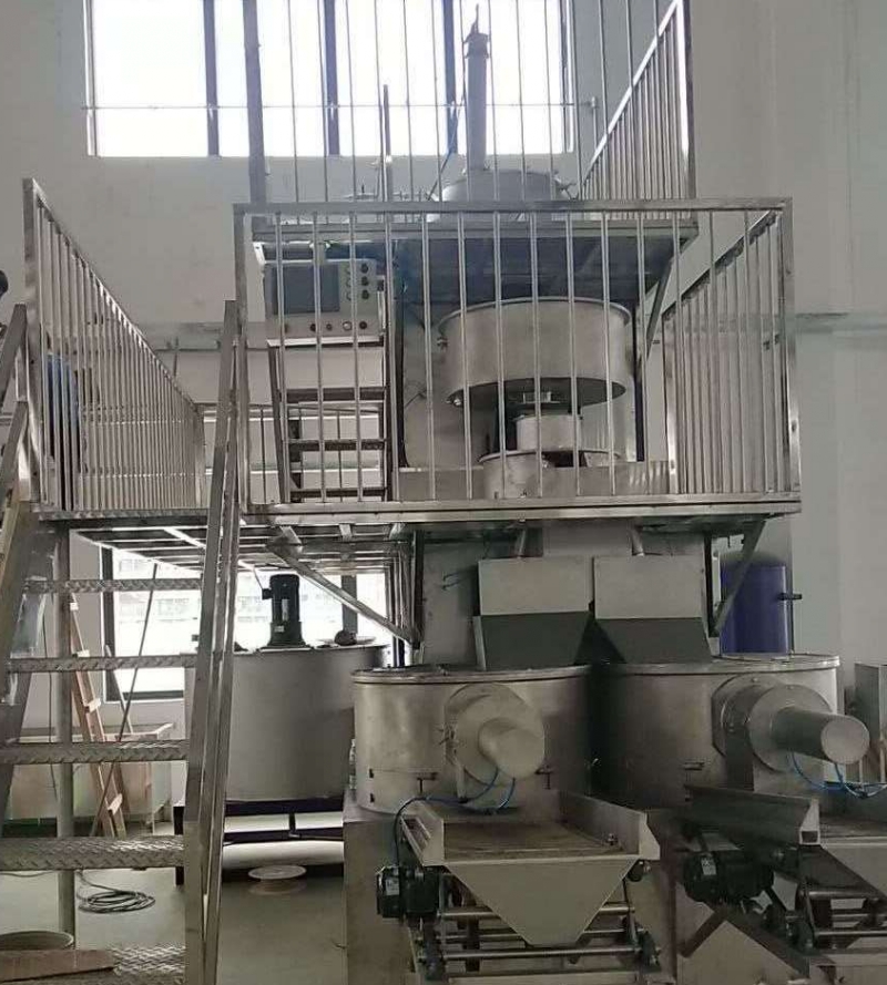 三套生產型濕法制粒/擠出滾圓一體機基本完工,到了最后的調試階段